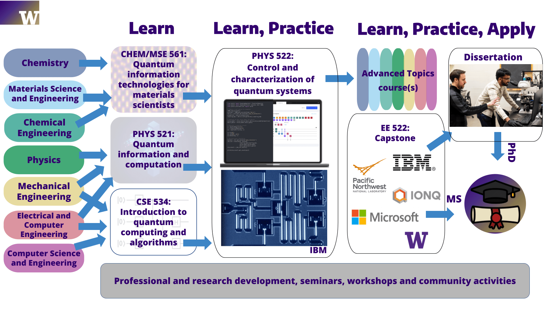 - Second year: Introductory quantum course (Fall), Implementation in QI (Winter), Capstone (Spring)